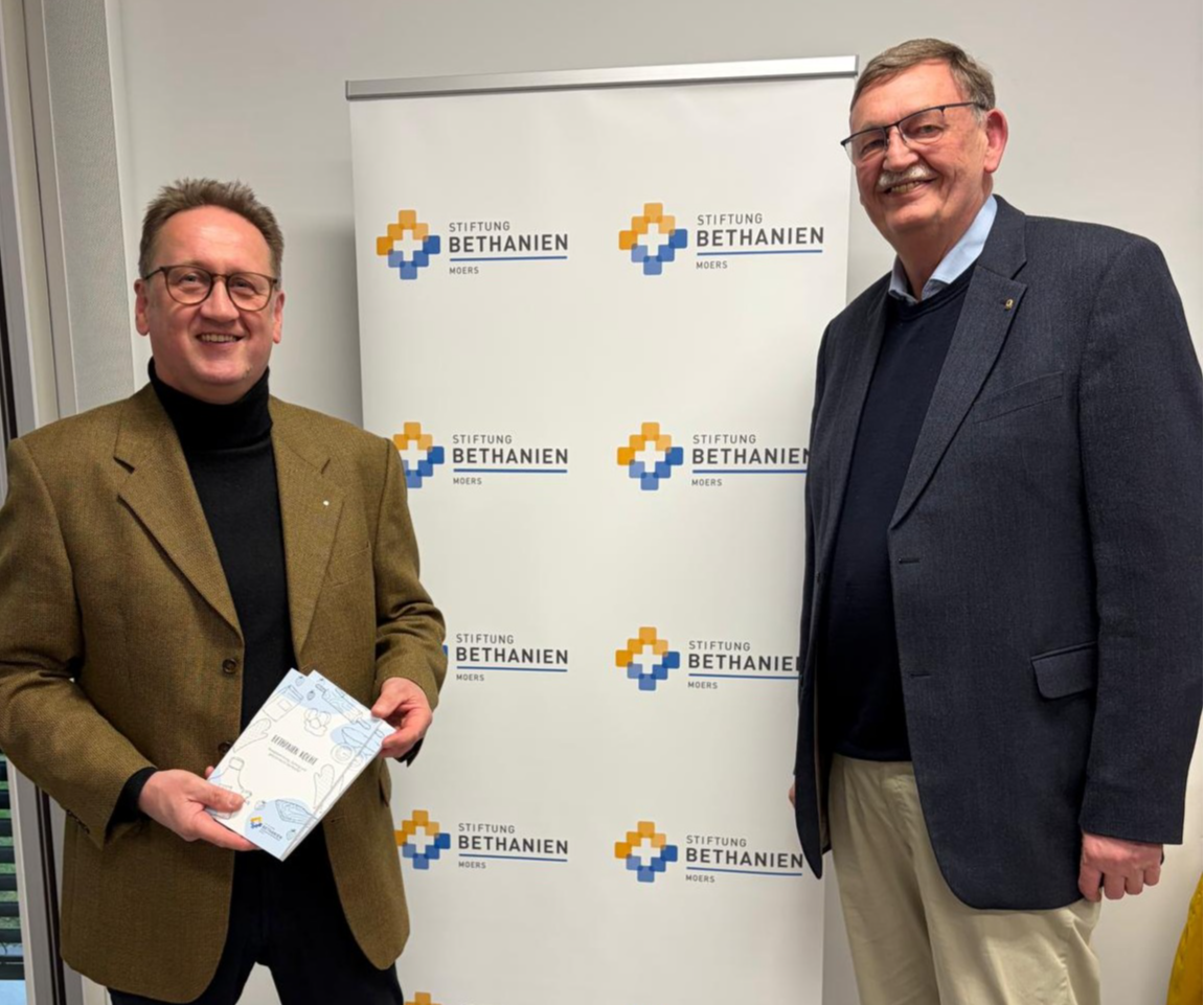 Das Bild zeigt den Präsidenten des Lions Club Moers, Dieter Themann (links), und den Club-Sekretär Dr. Reimund Göbel im Rahmen der Feierstunde der Stiftung Bethanien.